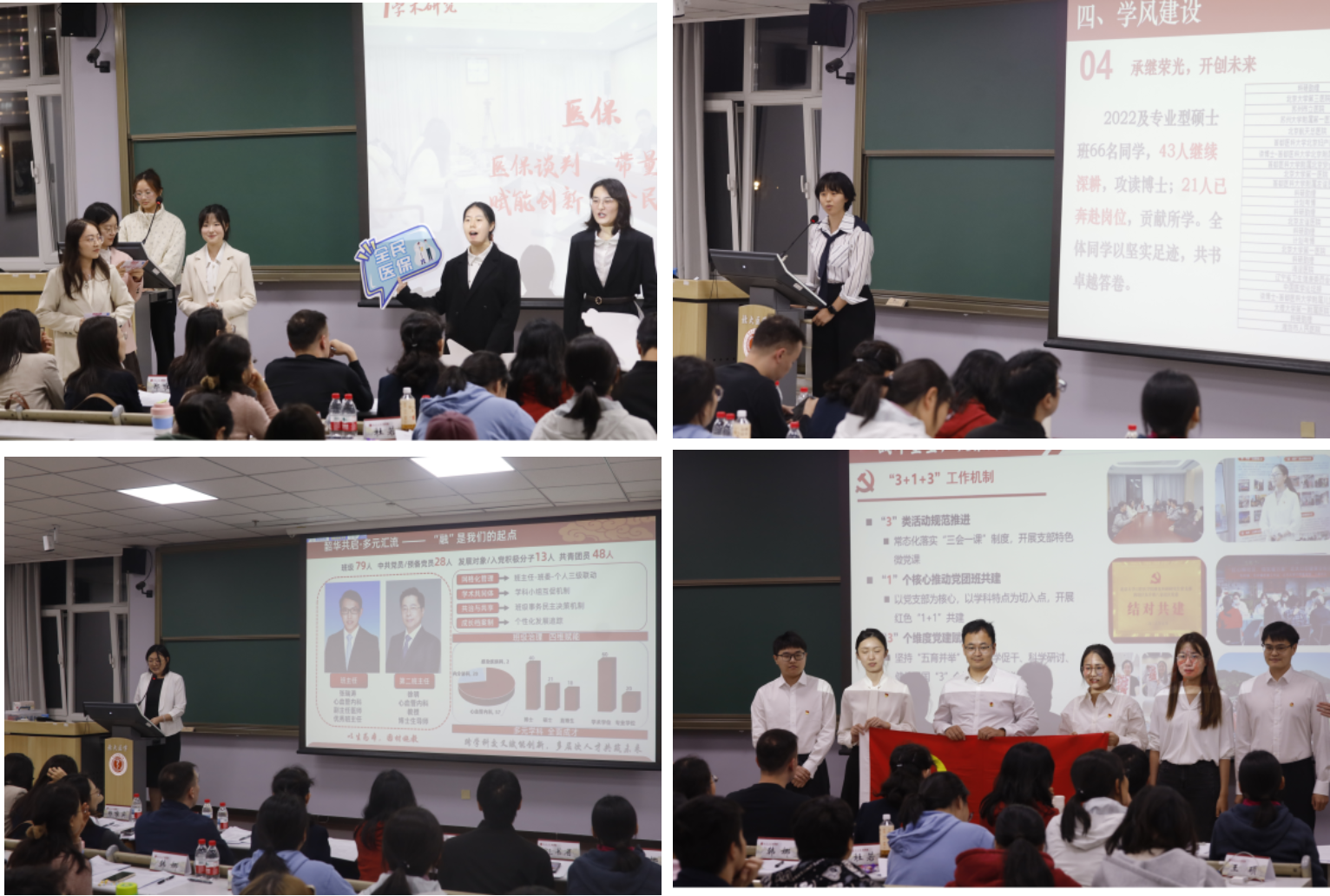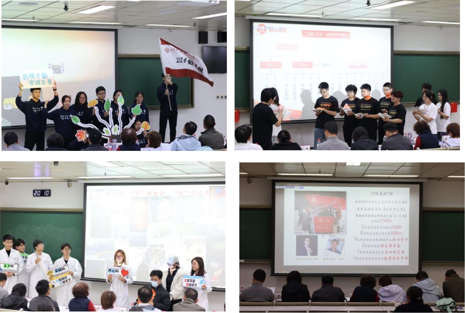 组织构建,协同高效有力度。班团一体协同运作,职能小组各司其职。各班通过民主参与、协同配合,充分发挥集体智慧,展现出强大的组织凝聚力和执行力。基础医学院2023级临床2班将班级比喻成“救护中心”,让班团活动缺上进心、学习缺信心、志愿缺爱心、课余缺开心、科研缺创新的“患者”用五位一体的方式在点点滴滴中重获“心”生;基础医学院2023级基础2班以团建带班建,组织14位老师参与的PI分享会,开展企业参访激发创新思维,以清晰思路全面提升班级活力;药学院2023级药学3班践行“荣药三班,制度药全”的理念,35名百小草用45条规章制度涵盖班级各个方面,为班级平稳运行和成员发展提供坚实保障;公共卫生学院2022级预防1班采取主题班会的形式展示班级独特的管理学习双轨模式,双线并行,结构清晰,致力于发出公卫人的最强音。