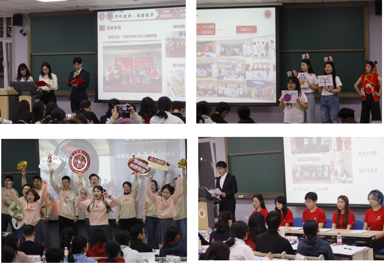 青春竞发,芳华灼灼。23个本科生班级全面梳理并展示了学年建设成果。各班通过主题陈述、影像展播、创意表演等丰富形式,以真挚的情感与创新的表达,生动诠释了班级在思想引领中筑牢信仰、在勤学笃行中追求卓越、在组织建设中凝聚合力、在服务奉献中彰显担当、在文化浸润中涵养气象的奋进姿态。