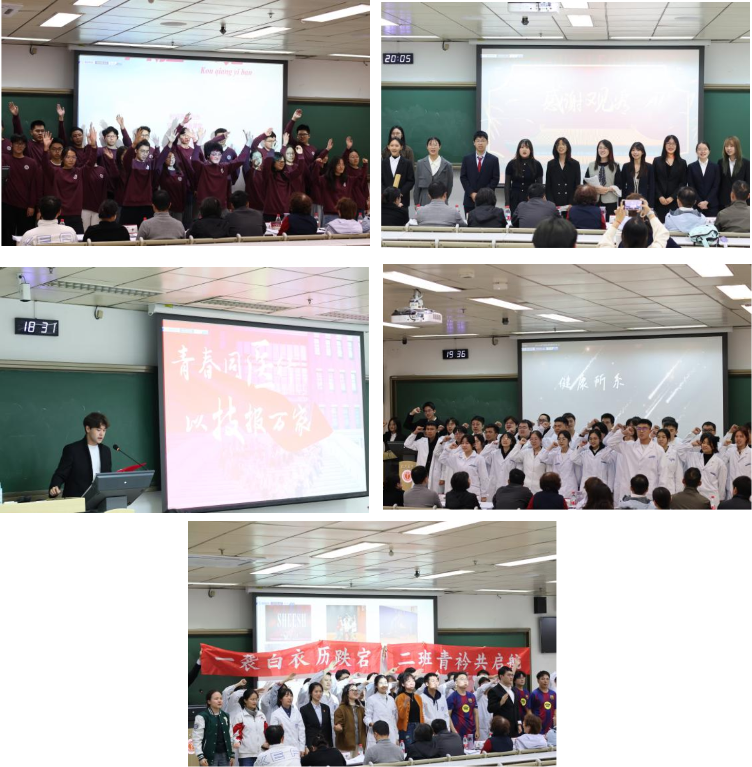 文化浸润,春风化雨添温度。班徽班服自主设计,原创班歌深情唱响,班级公众号记录成长点滴。独具特色的班级文化如春风拂面,温暖人心,让每位成员在充满温情的集体中找到归属,获得成长。基础医学院2024级口腔一班巧解“쌗”字内涵,牙是专业根基,合是一起走过的岁月。班级公众号将团日活动、生日推送、爱牙日志愿服务等全部囊括,展现“行而不辍,驰而不息”的班级精神;药学院2023级药学1班借助专业特点,将“君臣佐使”四味药物与班级文化深度结合,让传统文化在班级发展中迸发新生;护理学院2024级护理1班融合学院吉祥物打造班级标识,设计班服班徽和班旗,佩戴发光手环舞动青春力量;医学人文学院2024级医学英语班现场播报“医英新闻”,班级注重宿舍建设和人文关怀,多次举办夸夸活动帮助同学增强信心,拉近距离;第三临床医学院2020级临床3班正如歌声中唱的“向光而行为热爱,十年一日不更改”,始终以脚踏实地和担当作为班级精神内核,团结互助,一路进步高歌。