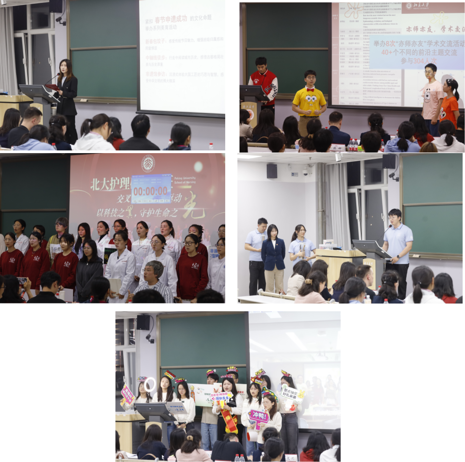科研创新,勇攀医学高峰。药学院研究生3班巧妙化用"辛甘酸苦咸"五味哲理阐释班级文化与科研历程,通过展示中药材及团队科研成果,诠释科研工作的百味人生;公共卫生学院流行病与卫生统计学系研究生班创新性地以"海绵宝宝"角色扮演形式介绍班级,凭借年度发表110余篇SCI论文的亮眼成绩,展现了北大公卫的科研实力;护理学院护理研究生班聚焦临床痛点,研发智能推车、智能敷贴等创新护理系统,让科技更有温度;第三临床医学院研究生4班在科研转化道路上硕果累累,累计影响因子达六百余分,见证着他们的执着追求;临床肿瘤学院研究生2班则以别开生面的直播间形式将现场气氛推向高潮,以"充电宝"寓意以信仰充电,"菜鸟翻身宝典"生动展示各项科研成果,让科研创新以更生动的姿态走进人心。