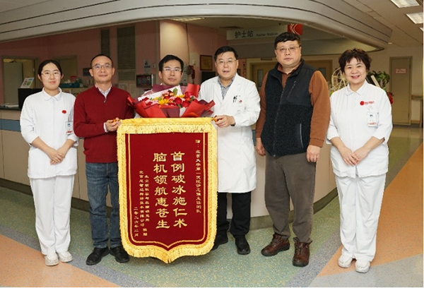 罗敏敏所长对北大医院神经外科在脑机接口临床工作中取得的突破性进展给予高度评价。他特别指出,首例植入全球首个半侵入式128通道高通量柔性无线脑机接口系统“北脑一号”的患者已呈现良好的治疗效果,功能改善明显,这是一项具有里程碑意义的成果。罗敏敏所长高度赞赏神经外科团队在手术操作、术后管理和康复跟踪等方面展现出的专业精神与严谨态度,并代表脑所向团队赠送锦旗和感谢奖杯。