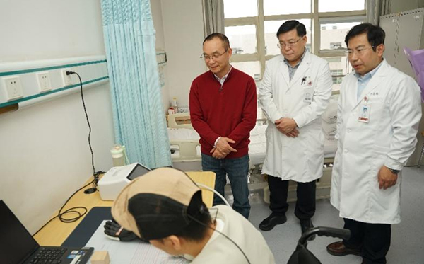姜辉书记、伊志强主任陪同罗敏敏所长一行参观了北大医院“体验式”脑机接口病房,看望了正在住院训练的北脑一号植入患者。他们仔细询问患者感受与康复进展,并现场观摩了患者脑控气动手套成功实现抓握取物,研究团队为患者献上鲜花和新春的祝福。罗敏敏所长对脑机接口病房的成立与建设表示热烈祝贺与充分认可,认为这是推动脑机接口技术从实验室走向临床转化的重要一步。