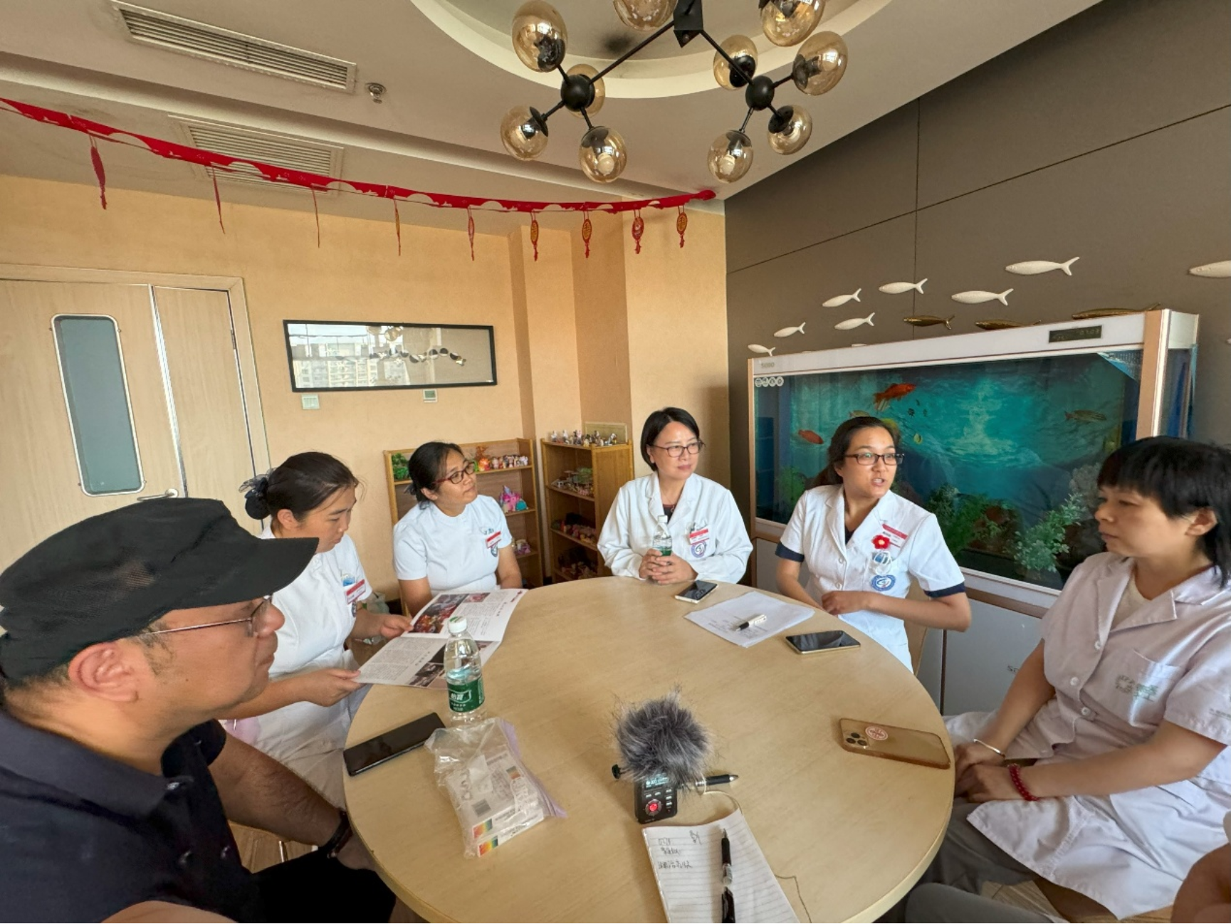 北京大学首钢医院安宁疗护病房主任王晓东、医生黄丹丹(因病已故)等与患者家属沟通现场