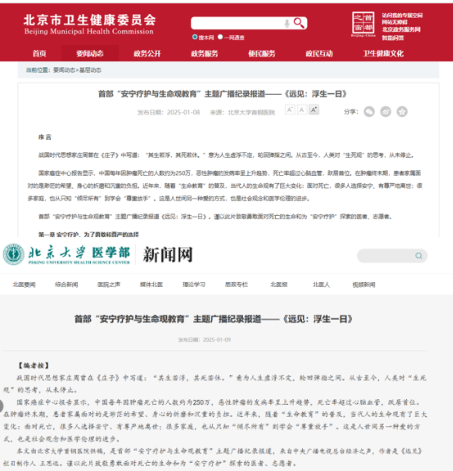 北京市卫健委、北大医学部等转发作品中文版《浮生一日》