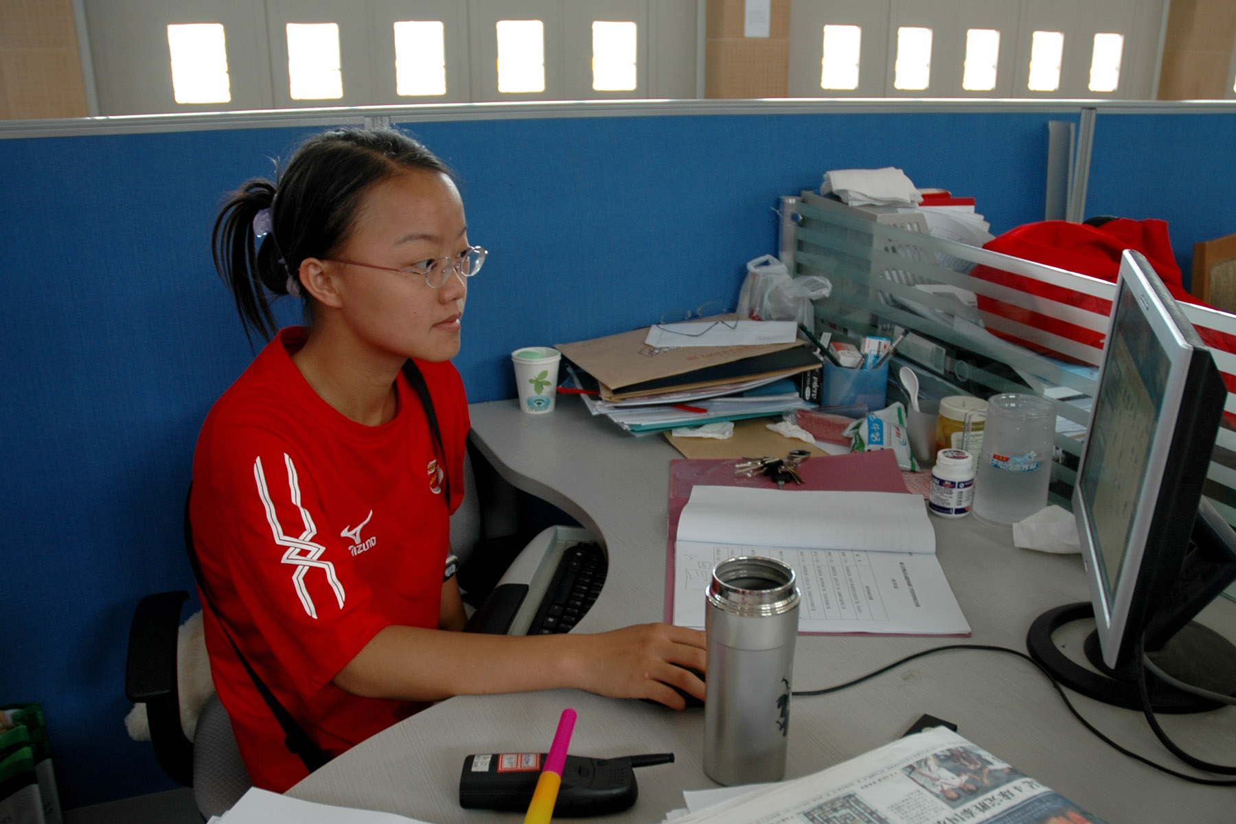 来自北京大学医学部的赵岩同学主要负责办公室与志愿者的沟通联系工作,及时传达办公室的通知给志愿者。另外,每天早晚她还负责发出和收回对讲机。吃饭的时候她负责给医疗部所有工作人员和志愿者订餐,并且将饭菜送到主赛场,而自己总是最后一个才吃到饭。谈到志愿工作的感受时,她对我说:尽管每天工作很繁忙,但是对于在学校做实验室研究的她这样的工作是新鲜的,而且在工作中她认识了许多新的朋友,所以工作起来心情很好,我也总是看到赵岩带着灿烂的微笑工作。赵岩还告诉我:她在工作中学到了许多与人交流沟通的经验,很受启发。