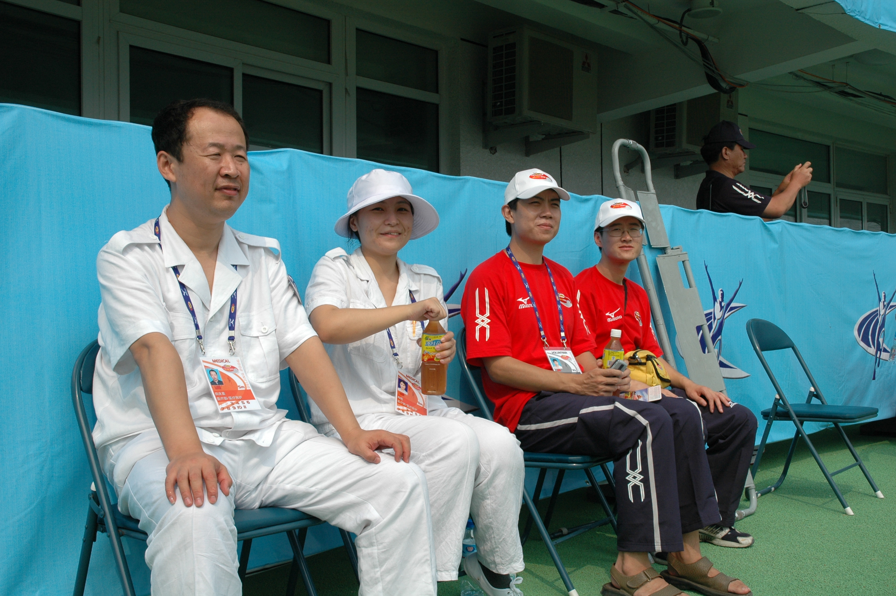 虽然此次世青赛徐崑同学的工作岗位在主赛场之外,他根本看不到比赛现场,但是接受这个任务时他毫无怨言,他对我说:“虽然不能到主赛场,但是为世青赛服务是不分时间和地点的。热身场是运动员赛前准备的地方,他们的身体状况对比赛有着重要的影响,因此在热身场为运动员做好医疗救护工作也是非常重要的。” 徐崑同学正是以良好的心态认真对待工作。每天从早上七点到晚上10点左右,他坚守在自己的岗位上,帮助医生对患者进行现场救护,搬抬病人和冰块,担当运动员和医生的翻译。他肯吃苦,有耐心,有一次因为天热和长时间工作他不慎中暑,发起高烧,稍作休息后第二天徐崑同学又出现在志愿工作的岗位上,依旧微笑的为患者服务,他热情细心的服务也赢得了被救护者的赞许和医疗部医生们的肯定。我问徐崑做世青赛志愿者最大的感受是什么?他告诉我:“和其他志愿者每天帮助医生救助10多名来自各个国家的运动员,认识了很多中外朋友,非常愉快;而且当看到患者得到帮助后感激的眼神,听到道谢的话语时,觉得自己很有成就感,也就更有动力继续改进工作中的不足,让自己更好的为世青赛服务。”