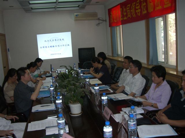 2006年9月6日,北京市卫生局治理商业贿赂督导组来北京大学第六医院,对北大六院治理医药购销领域商业贿赂自查自纠阶段的工作进行检查。由北京市卫生局郭晋和副巡视员担任督导组组长、组员许峻峰、金春明、郝美华、赵亮宇等一行五人听取了北大六院关于治理商业贿赂专项工作的详细报告。北京大学第六医院治理商业贿赂领导小组组长、院长于欣,副组长、党委书记黄悦勤以及医院治理商业贿赂领导小组和工作小组的其他成员参加了会议。