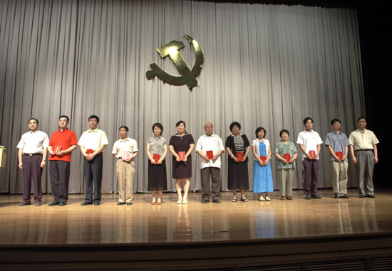 大会由两部分组成。首先由机关党委副书记谭昌妮同志主持召开了机关党委表彰大会。会上表彰了25位机关各党支部评选出的“身边的好党员”和62位入党50年以上的老共产党员。离休支部陈化同志代表入党50年以上的老党员讲话,她以自己在战争年代入党和侨居美国的亲身经历,讲述了自己对党的信仰。她鼓励年轻党员要永远坚定共产主义理想,为党的事业贡献自己的力量。马焕章副书记在讲话中对老党员表达了自己的敬意,并号召全体党员向优秀党员学习,加强基层党建,结合机关实际加强机关文化建设。