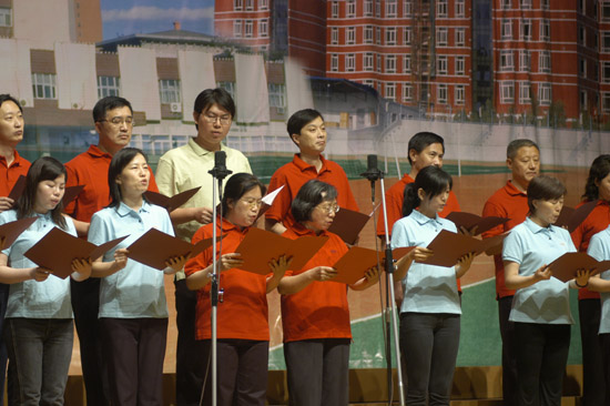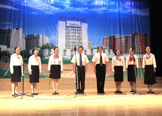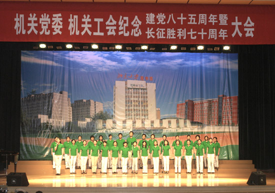 表彰大会后随即举行了庆祝建党85周年暨长征胜利70周年“诗与歌”演唱会。来自机关各部处、直属单位的“演员”纷纷登台亮相,为大家贡献了一台精彩纷呈的节目。其中计财处一曲自编自导自演的《家在北医》博得了满堂喝彩,教育党支部一曲《祝福祖国》唱出了机关全体职工的心声,几位主持人带来的电影《长征》片段配音使大家又回到了那段难忘的岁月。特别值得一提的是,很多部处领导和直属单位负责人都亲自登台表演节目,会场气氛十分热烈,大家不断为台上精彩的节目鼓掌喝彩。下午4点半,大会在《没有共产党就没有新中国》的嘹亮歌声中圆满结束。