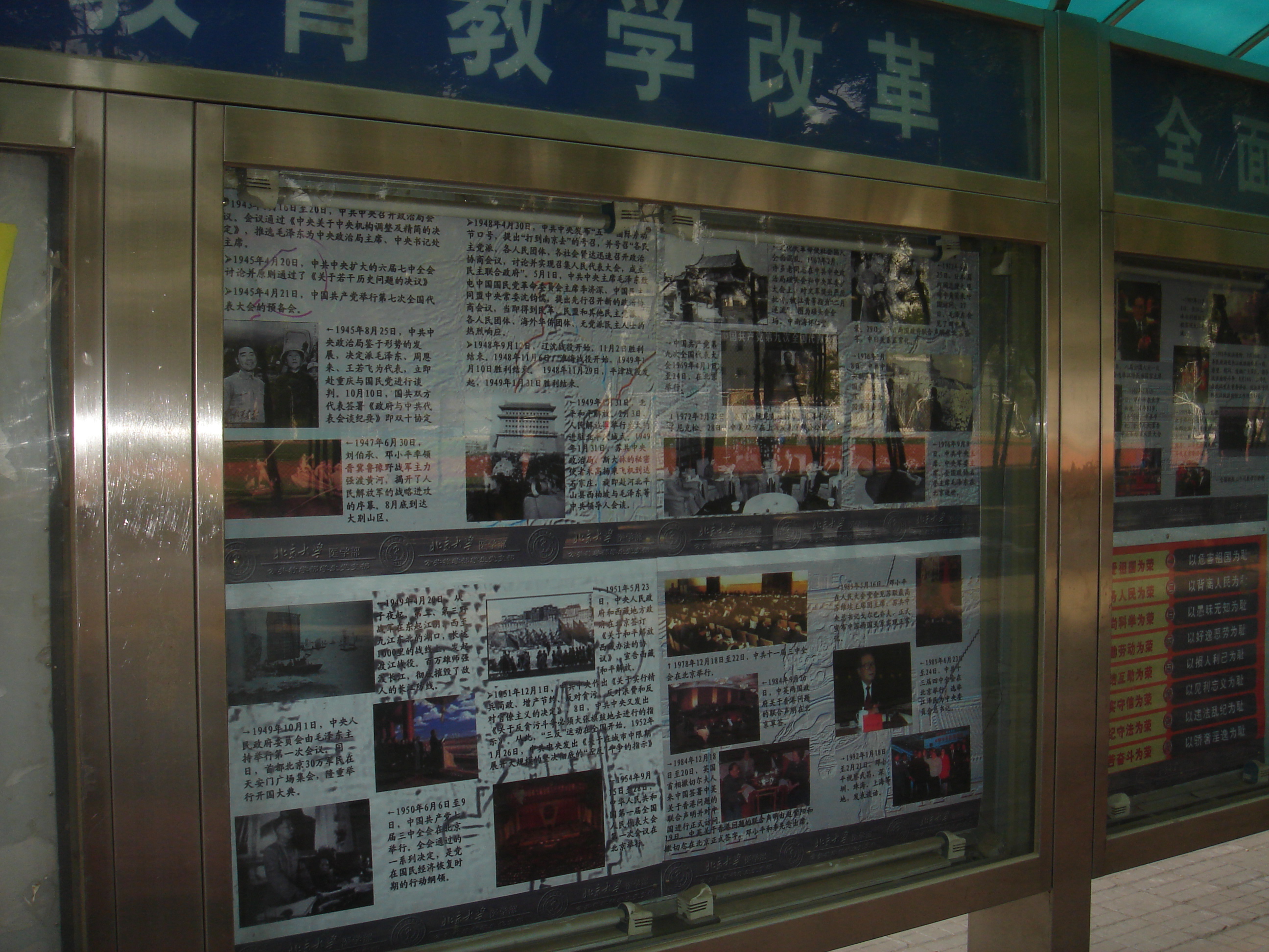 八十五年以来,在中国共产党的领导下,中国人民不仅建立了人民民主专政的社会主义新中国,还在政治、经济、文化、军事、卫生等各方面取得了举世瞩目的成就。二OO六年,在即将迎来党的第八十五个生日前夕,北京大学医学部公共教学部学生党支部的同学们自己动手设计制作了一系列宣传图片,在医学部四号楼前橱窗展出,以此表达内心的真挚情感,隆重庆祝建党八十五周年。