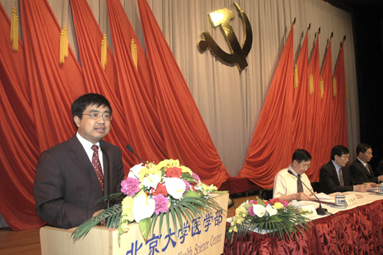 北京大学党委书记闵维方对大会的召开表示热烈的祝贺,他号召大家要抓住本世纪头二十年的战略机遇期,做好各项工作,要探讨保持共产党员先进性教育的长效机制。在讲话中他深深地感谢救治孟二冬教授的北京大学医务人员,并称赞医务人员高尚的医德和精湛的医术。