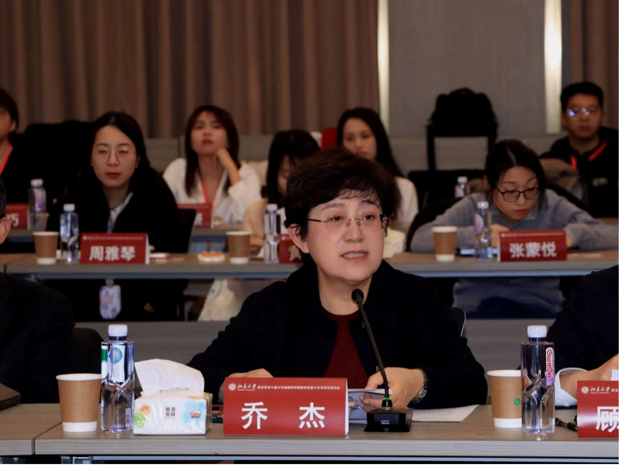 北京大学常务副校长、医学部主任乔杰院士代表学校对项目启动表示祝贺,并表达了对国家卫健委、国家疾控局领导及长期支持北大医学发展、推动传染病防控事业的各位专家学者的感谢,对项目组成员的团队协作精神、成功推动项目立项表示肯定。她表示,作为项目依托单位责任重大、使命光荣,学校将大力支持,为本项目保驾护航。