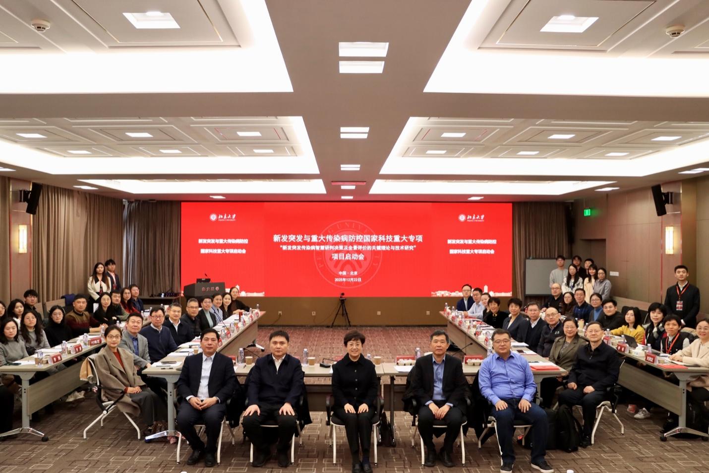 2025 年 12 月 22 日上午,由北京大学公共卫生学院刘珏研究员担任项目负责人/首席科学家的新发突发与重大传染病防控国家科技重大专项项目“新发突发传染病智慧研判决策及全景评价的关键理论与技术研究”项目启动会在北京大学医学部会议中心举行。