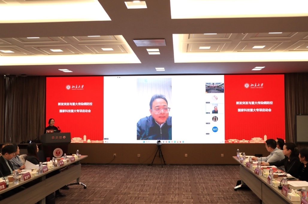 国家卫生健康委医药卫生科技发展研究中心主任顾金辉,国家疾控局传染病防控司司长雷正龙,国家疾控局监测预警司司长焦振泉,新发突发与重大传染病防控国家科技重大专项副总师、中国疾病预防控制中心主任、中国工程院院士王健伟,新发突发与重大传染病防控国家科技重大专项副总师、南方科技大学全科医学院院长梁万年莅临指导。项目依托单位北京大学常务副校长、医学部主任、中国工程院院士乔杰,北京大学医学部科研处处长王坚成,北京大学医学部科研处副处长邓锐、北京大学医学部科研处重大项目办公室主任李娜等出席会议。