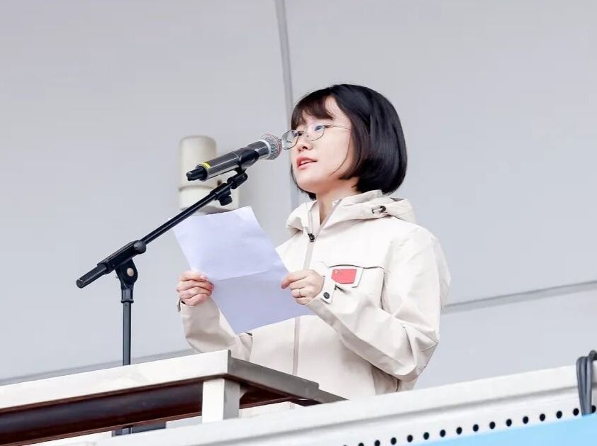 麻醉科刘凯茜代表全体运动员宣誓,表示将在比赛中严格遵守比赛规则和赛场纪律,服从裁判,团结协作,顽强拼搏,公平竞争。
