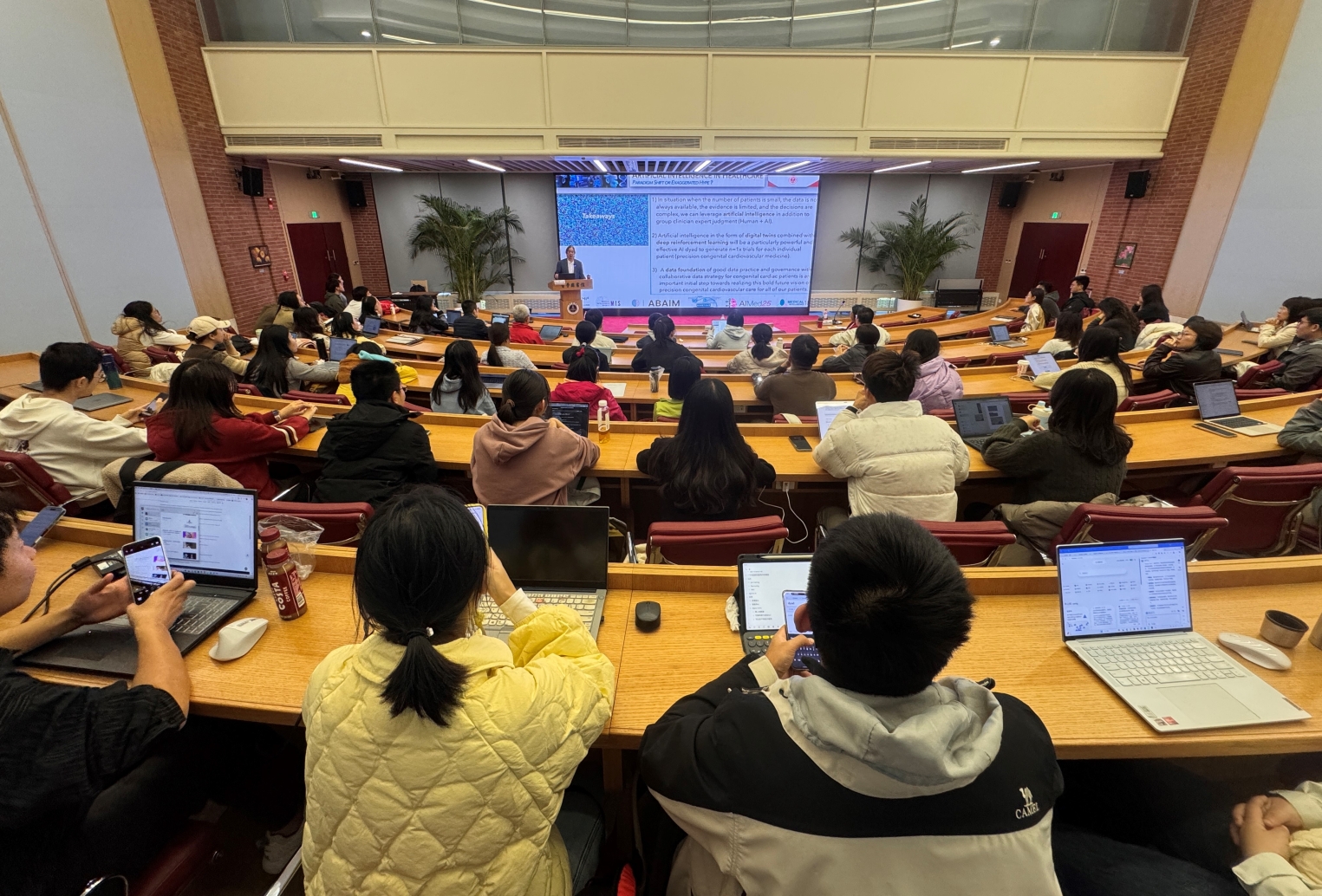 Anthony Chang教授还介绍了“数字孪生+深度强化学习”的n="1×临床试验构想:把每一位先心病患儿的心脏超声、MRI、基因及生命体征数据同步映射到“数字孪生体”,通过持续模拟不同干预方案,提前在虚拟世界验证疗效,再反哺真实世界精准用药与手术规划。讲座尾声,他寄语北大医学的研究生们:“AI不是替代医生,而是把250,000:1的先天心病医患比,缩小到1:250,000的精准守护。”