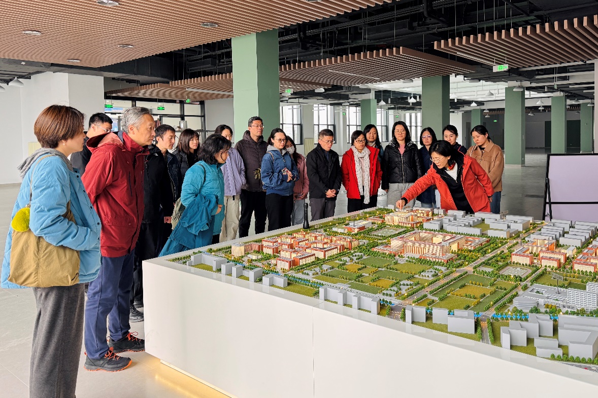 在北京大学怀密医学中心的建设现场,大家实地感受了热火朝天的建设氛围。医学部国内合作委员会办公室副主任邢沫详细介绍了医学中心的整体规划和建设进展。她表示,怀密医学中心是北京大学未来医学发展的重要布局,将围绕北大医学战略发展目标,着力打造集医疗、教学、科研于一体的现代化医学中心。通过深入交流,同志们深刻认识到,怀密医学中心作为北京大学医学部服务"健康中国"战略的重要载体,不仅是北大医学优质医疗资源向外延伸的关键举措,更是优化首都医疗资源配置、提升区域医疗服务水平的重要工程。看着紧张有序的施工场景,大家深受鼓舞,纷纷表示将要将服务国家战略和首都发展的宏观要求,转化为立足本职岗位、锐意创新的具体行动,奋力书写北大医学服务人民生命健康事业的崭新篇章。