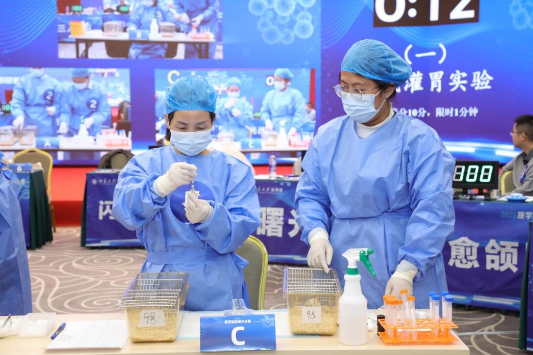在动物实验操作环节,每个队伍派出一名选手完成小鼠灌胃、鼠尾静脉、腹腔麻醉三个实验,选手们手法沉稳、操作精准,每个细节都凝聚着平日里反复练习的汗水。实验后,分析中心的工作人员利用超声仪器对操作效果进行现场检验,以获得对实验操作更加全面的验证与考核。