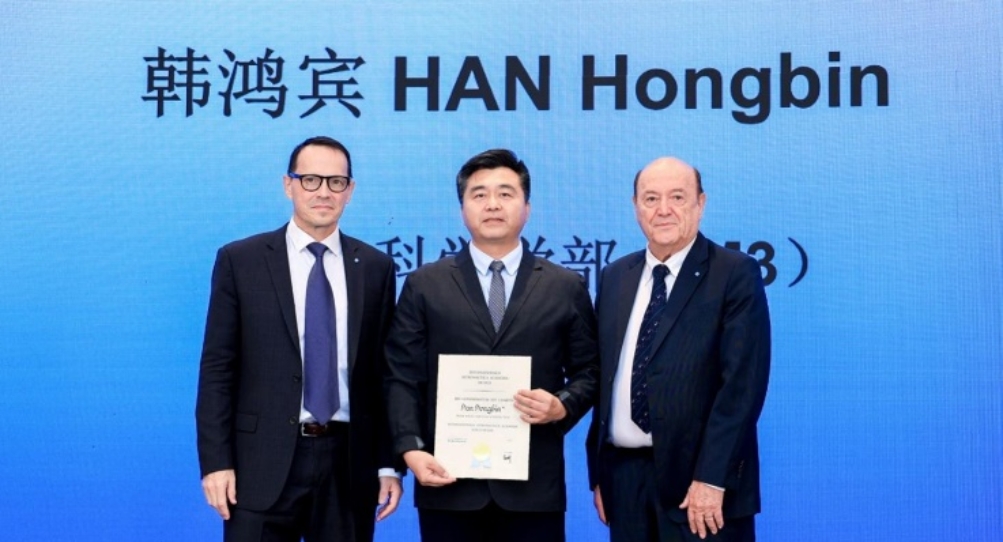 会上,国际宇航科学院秘书长Jean Michel Contant代表科学院向中国区新增选的六位终身正式院士颁发证书。北京大学韩鸿宾教授受邀出席,并获颁新任院士证书,成为2025年度中国区唯一入选生命科学部的国际宇航科学院院士。