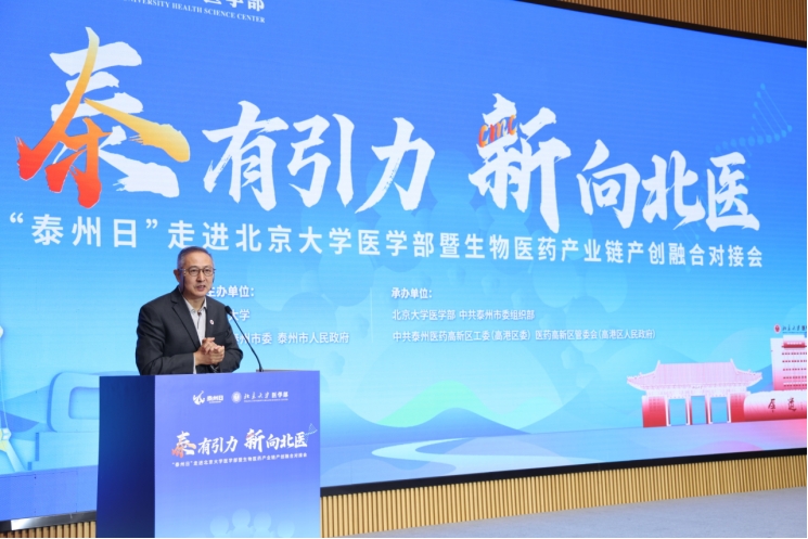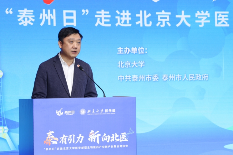 推介会上,姜冬冬对北大医学部长期以来给予泰州生物医药产业的大力支持表示衷心感谢。他谈到,北大校友在泰州医药高新区创办了近20家优质企业,双方共建的北大医学部(泰州)医药健康产业创新中心(“泰州创新中心”)产学研合作成果显著,作为北医首批异地科研机构之一,成为了校地合作新典范。他希望双方继续深化合作,期待未来有更多北医师生来泰创新创业,合力打造校地合作样板。