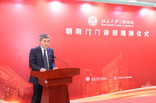 中石化集团总部后勤服务中心总经理、百川公司党委书记、董事史东斌书记对九门诊的启用表示热烈祝贺。他表示,朝阳门门诊部打通了中石化总部线上预约专属通道,为石化员工提供了更加优质便捷的口腔诊疗服务,切实增强了广大干部员工的获得感、幸福感。中石化集团期待未来能与北大口腔更加深化交流合作,推动院企合作再上新台阶。