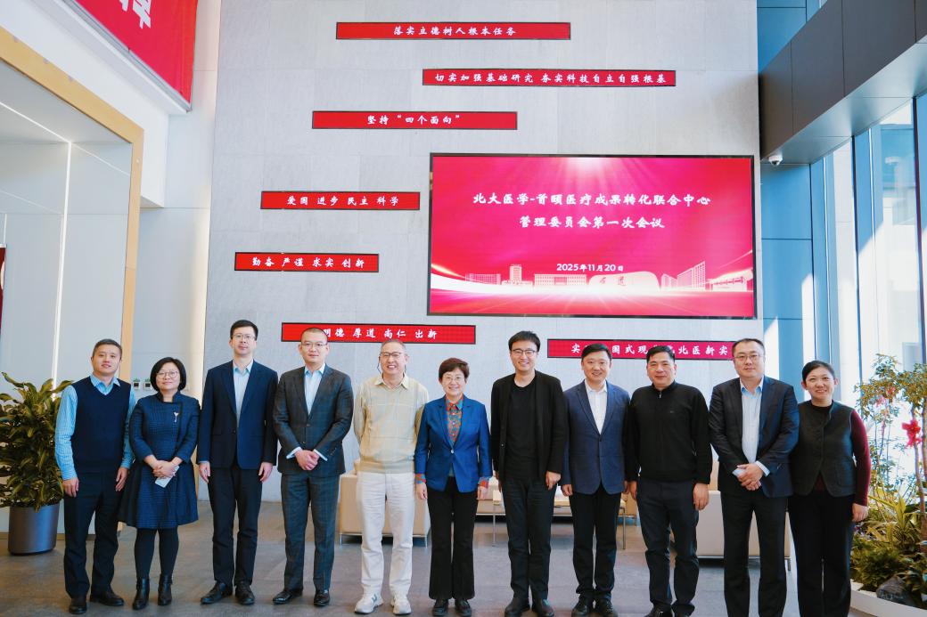 2025年11月20日,北大医学-首颐医疗成果转化联合中心(以下简称“联合中心”)管理委员会第一次会议在北京大学医学部召开。北京大学常务副校长、医学部主任乔杰,临床医学高等研究院院长王存玉,医学部副主任肖渊、王嘉东,首钢集团副总经理赵天旸、首颐医疗集团总经理姜墨林等管理委员会全体委员,以及中心办公室成员、相关领域嘉宾共同参会,为医学科技成果转化高质量发展谋篇布局。