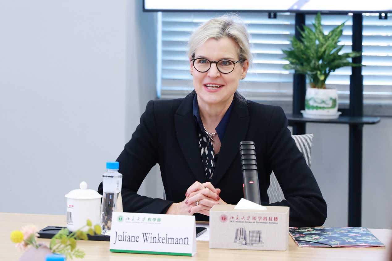温克尔曼感谢医学部的热情接待,并对双方合作成果和深厚友谊表示肯定。她强调,双方优势互补、合作势头持续增强。慕尼黑工业大学期待与北医进一步深化合作,实现多领域全方位协同发展,并在此基础上共同探索全球健康领域新课题,为推动国际医学交流合作与守护人类共同健康做出更大贡献。