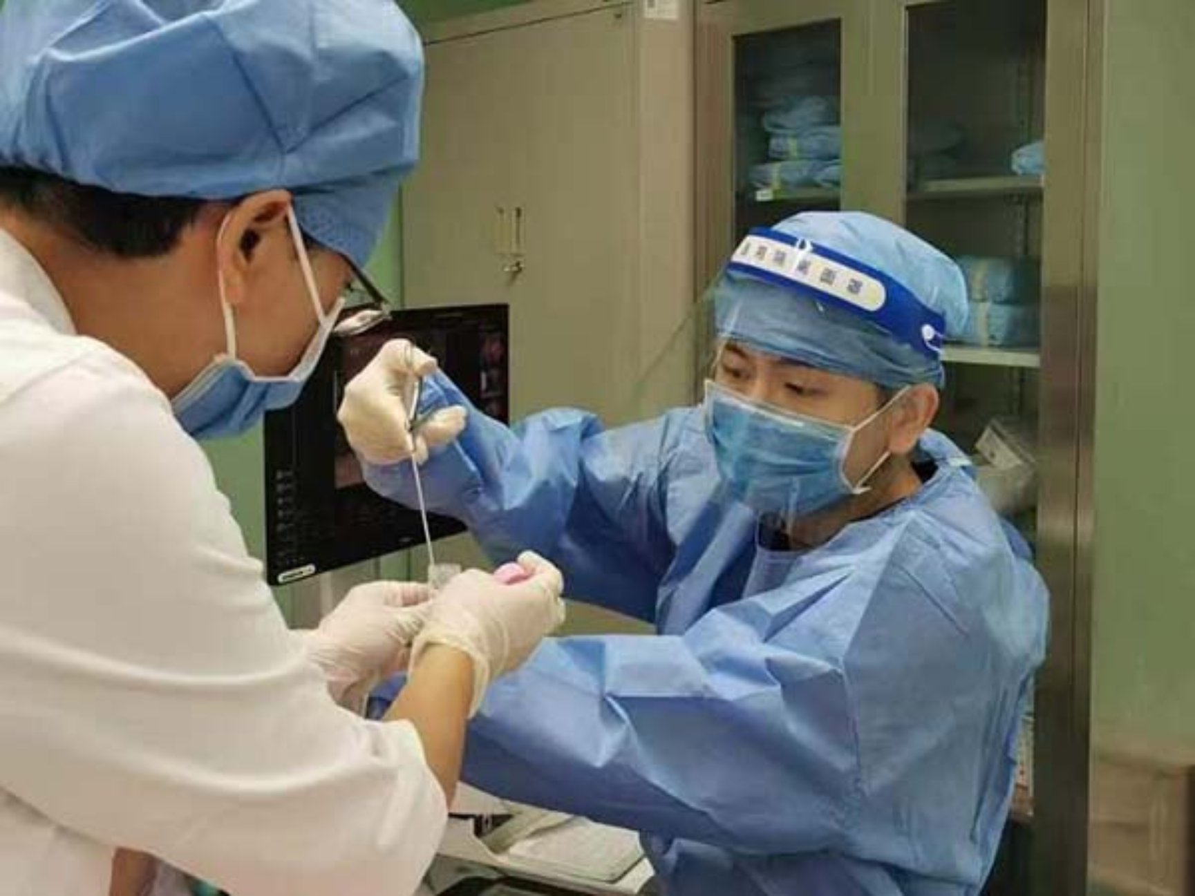 医生为患者完成高分辨率肛门镜(HRA)引导下活检