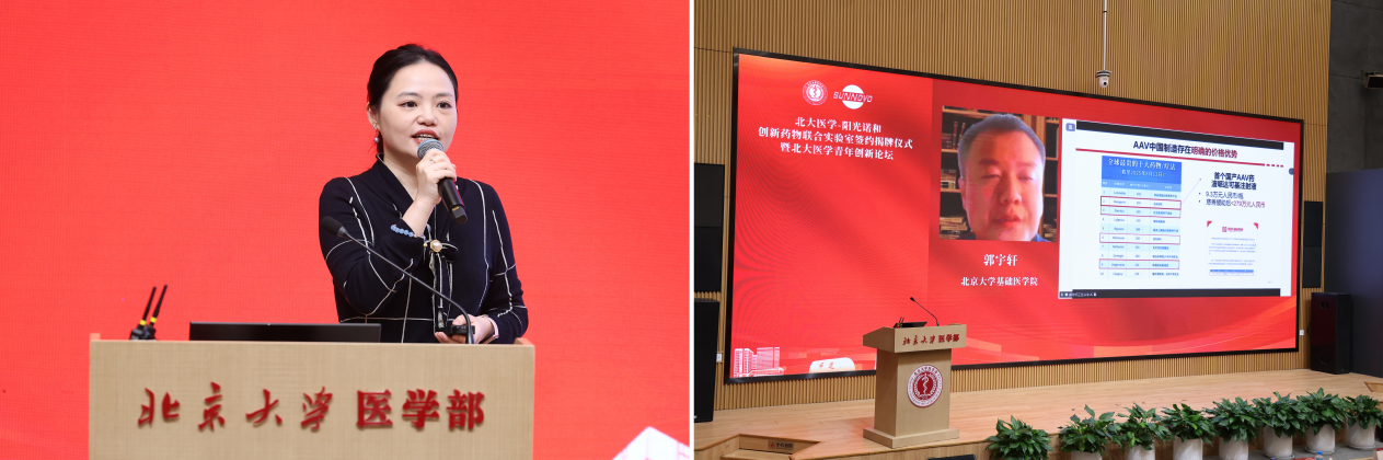 右:北京大学基础医学院助理教授郭宇轩在线作《基于AAV载体的心脏基因治疗研究》主题报告