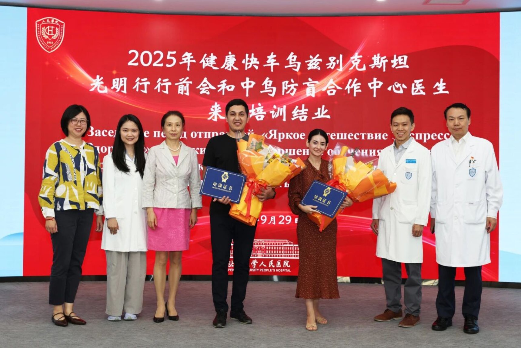 中乌防盲合作中心医生来华培训结业会议举行。2023年,中乌防盲合作中心在乌兹别克斯坦成立。北京大学人民医院在持续派出医疗团队赴乌开展白内障手术之外,更聚焦“授人以渔”的长效帮扶,助力乌方构建自主可控、可持续发展的防盲治盲医疗体系。
