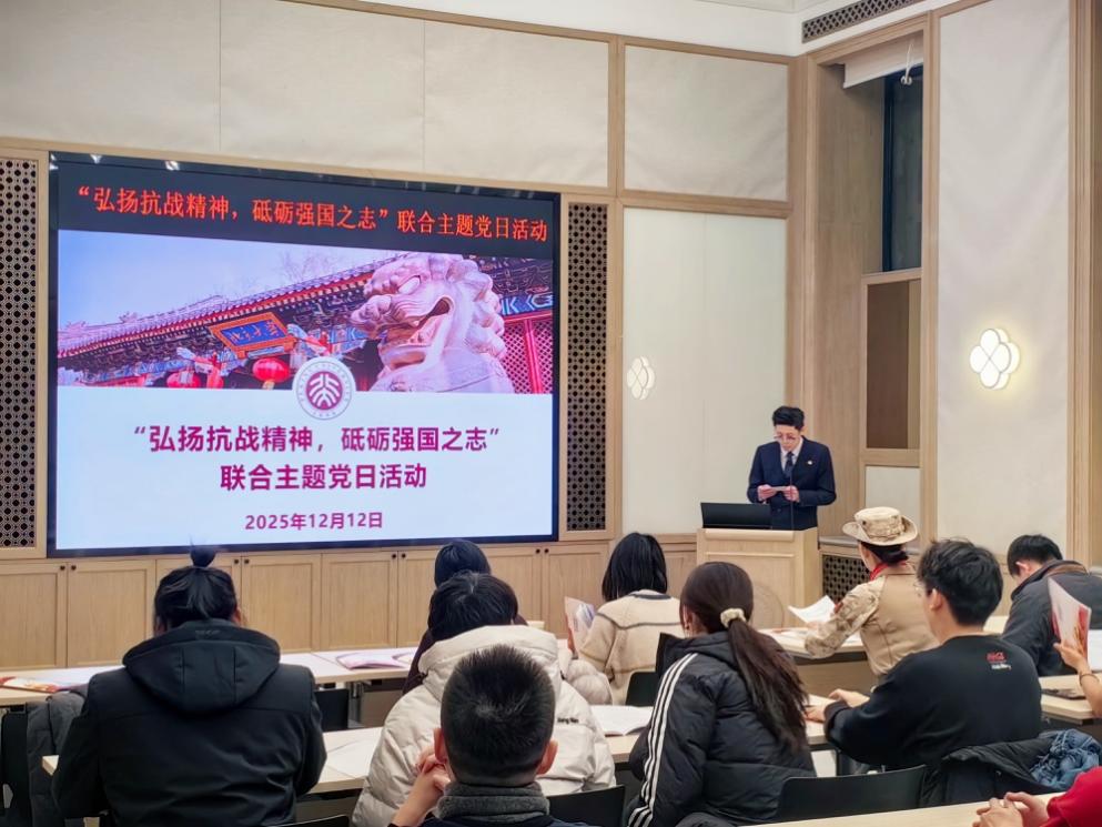 2025年是中国人民抗日战争暨世界反法西斯战争胜利八十周年,在第十二个国家公祭日前夕,12月12日晚,北京大学基础医学院生理与病理生理学系研究生党支部、药理学系研究生党支部、人体解剖与组织胚胎学系研究生党支部、系统生物医学研究所研究生党支部、本科生第一党支部,联合药理学系教工党支部和系统生物医学研究所教工党支部,共同举办“弘扬抗战精神,砥砺强国之志”主题党日活动,旨在引导师生铭记历史、弘扬抗战精神、传承红色基因,在回溯峥嵘岁月中凝聚奋进力量、砥砺强国之志。