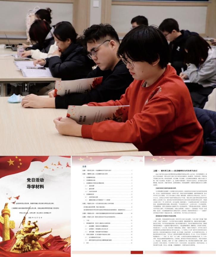 为深化理论学习效果,由本科生第一党支部组织参加活动的积极分子编写导学手册,手册包含“看传承之路”“溯精神之源”“观盛世之典”“明强国之策”和“担青年之责”五个主题,涵盖抗战精神、红医精神等学习内容,为参与活动的师生党员提供了全流程、多角度的学习材料。