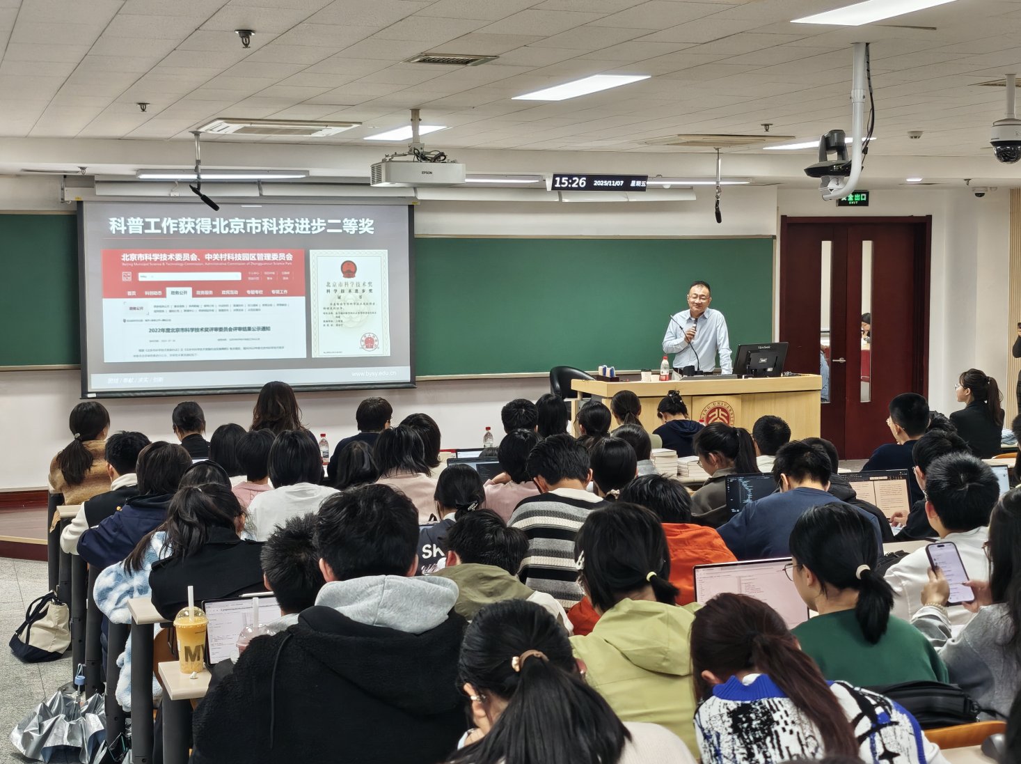 11月7日,为助力2025级医学新生筑牢职业精神根基、涵养医学人文情怀、提升健康科普能力,在医学新生职业成长的起点播撒医学人文种子,于知识传播中诠释医学职业精神,医学生预科办公室特邀北京大学第三医院重症医学科主任医师、知名医学科普作家薄世宁,以“做有血有肉有意思的医学科普”为主题,与医学预科新生展开深度对话。北京大学医学部党委副书记、2025级口腔2班第二班主任王军为,医学部学工部副部长张红梅,医学生预科办公室主任杨歌,医学预科各班辅导员参加活动。活动由医学预科学生助理团承办,医学人文学院2025级本科生李奕霏主持。
