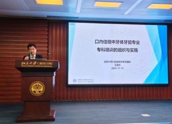 2025年11月13日至14日,由北京大学口腔医院口腔内科住院医师规范化培训基地(以下简称口内住培基地)主办的“口腔内科住院医师规范化培训的设计与实施”国家级继续教育培训班在京成功举办。本次师资培训班由北大口腔教学副院长胡文杰教授牵头组织,特邀多位上级领导出席。北京大学医学部继续教育处副处长杨英研究员、口腔内科各科室主任及教育处相关负责人出席开幕式。开幕式由口内住培基地教学主任王祖华主持。本次培训已是第三届,在延续往届高质量内容的基础上进一步优化升级,吸引了来自全国各口腔医学院校的78名教学骨干参与,专业影响日益扩大。
