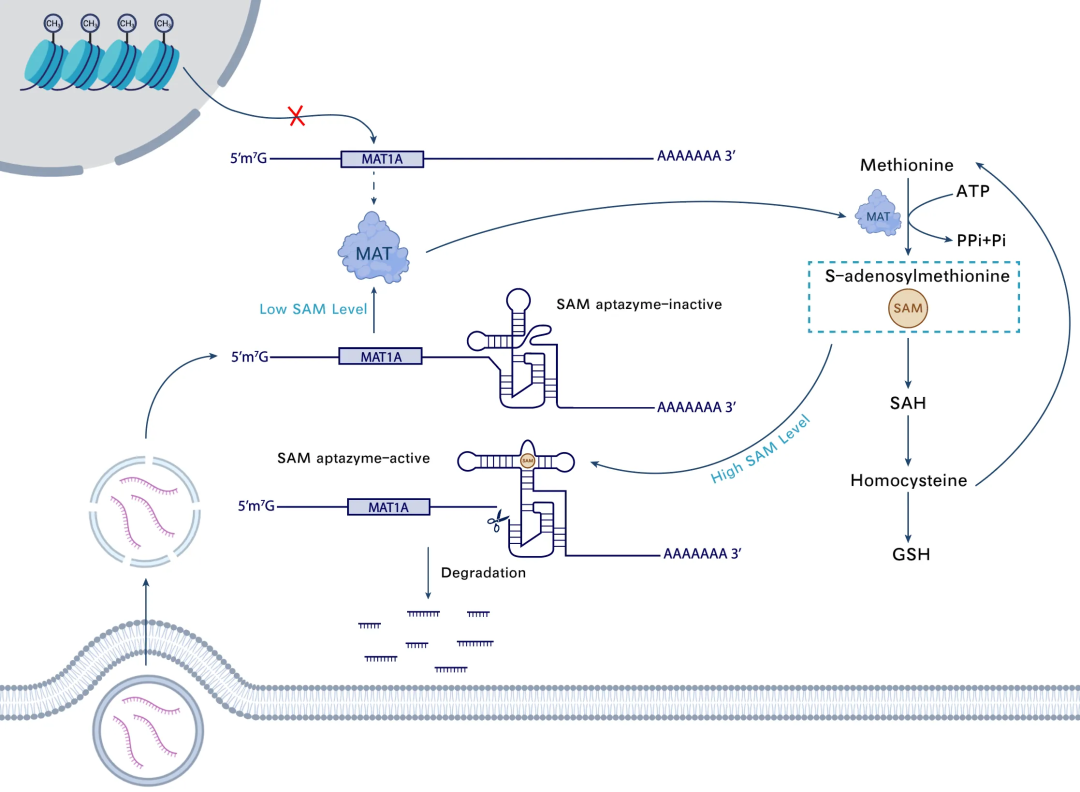 PekingHSC 2025 团队在张力勤老师的指导下,开发了基于 mRNA 的 ReguSAMe 智能调控平台。团队将可感知 SAM 的适配体与自切核酶耦联为“适体酶(aptazyme)”,嵌入 MAT1A mRNA 的 3′UTR,构建出对胞内 SAM 浓度的负反馈控制系统:在肝硬化细胞中,低 SAM 状态下 mRNA 稳定表达、促进 MAT I 合成以回补 SAM;在正常或偏高状态下,结合触发自切、加速 mRNA 降解以抑制过量,从而在提升疗效的同时降低脱靶与副作用。项目系统筛选并优化了适配体/核酶及 linker(优选 8 nt),在 eGFP 与 MAT1A 场景中验证响应性,并结合 ODE、分子动力学与深度学习模型加速序列筛选与药动学评估,搭建了“RNA-Factory”一体化设计平台;并探索 AAV/环状 RNA 等递送与延长体内半衰期策略,推进功能与安全验证。在全过程中,团队协同推进实验与社会调研,开展包容性科普与助残实践,推动设计走出实验室并评估转化与产业化前景,为肝硬化等 SAM 相关疾病提供工程化、可拓展的治疗新路径。