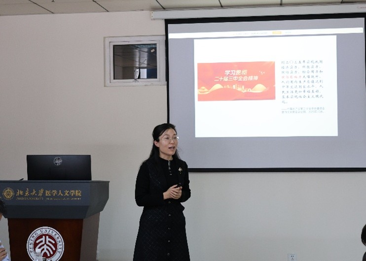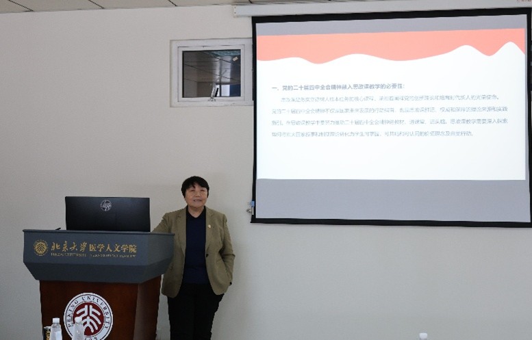 为深入贯彻落实党的二十届四中全会精神,研究讨论将全会精神与思政课教学、科研相结合,2025年12月8日,北京大学马克思主义学院医学部教研中心召开集体备课会。王玥教授、徐佳君长聘副教授、曹得宝讲师,结合自己的教学和研究进行了全会精神融入思政课的分享。会议由中心常务副主任李秉奎主持。医学人文学院党委书记高静、中心全体教师参加了本次集体备课会。