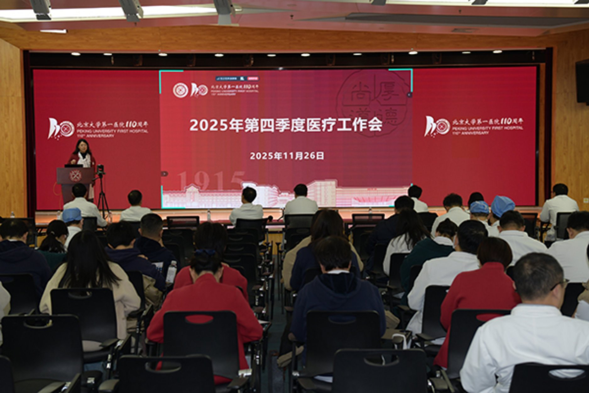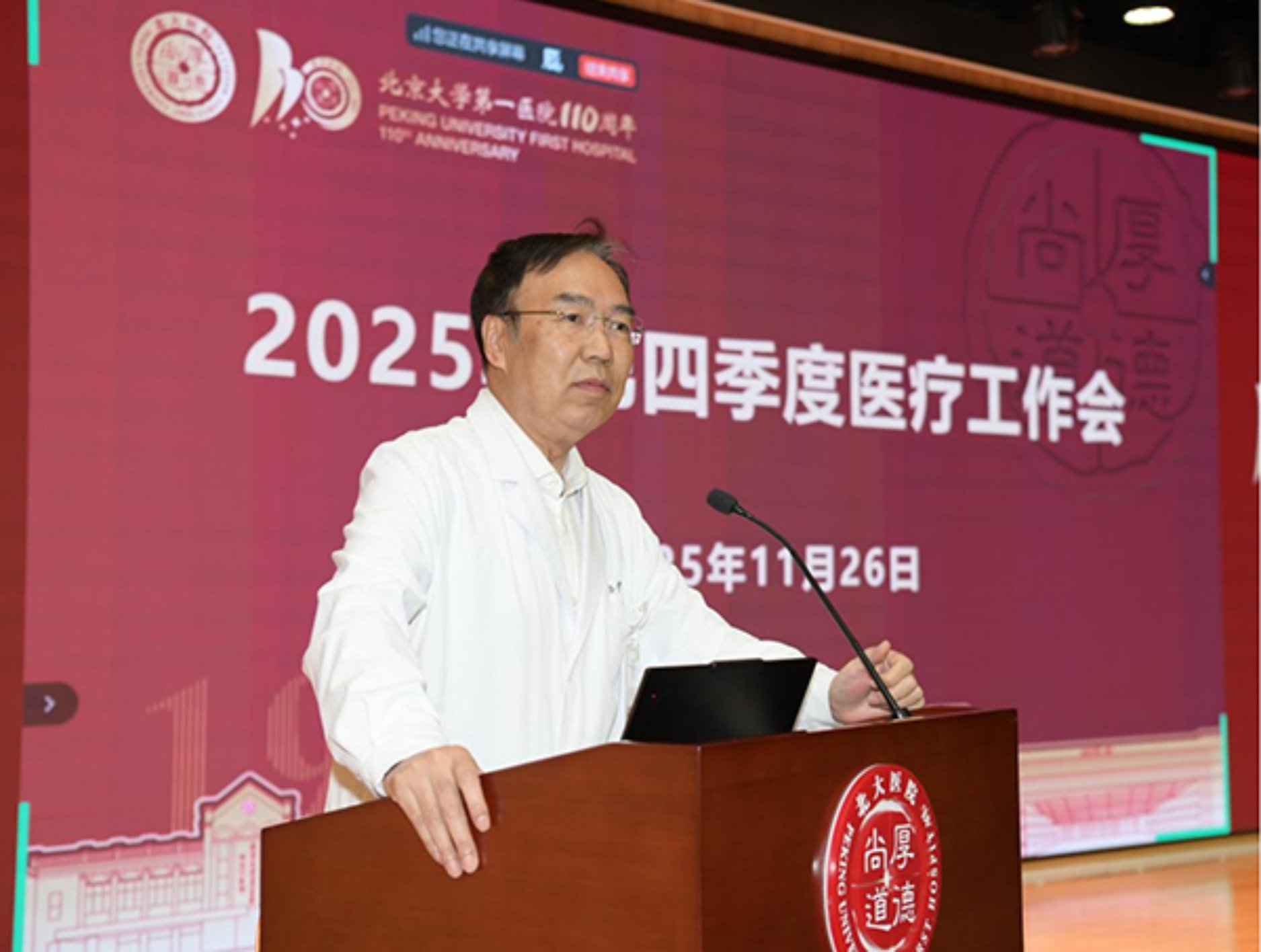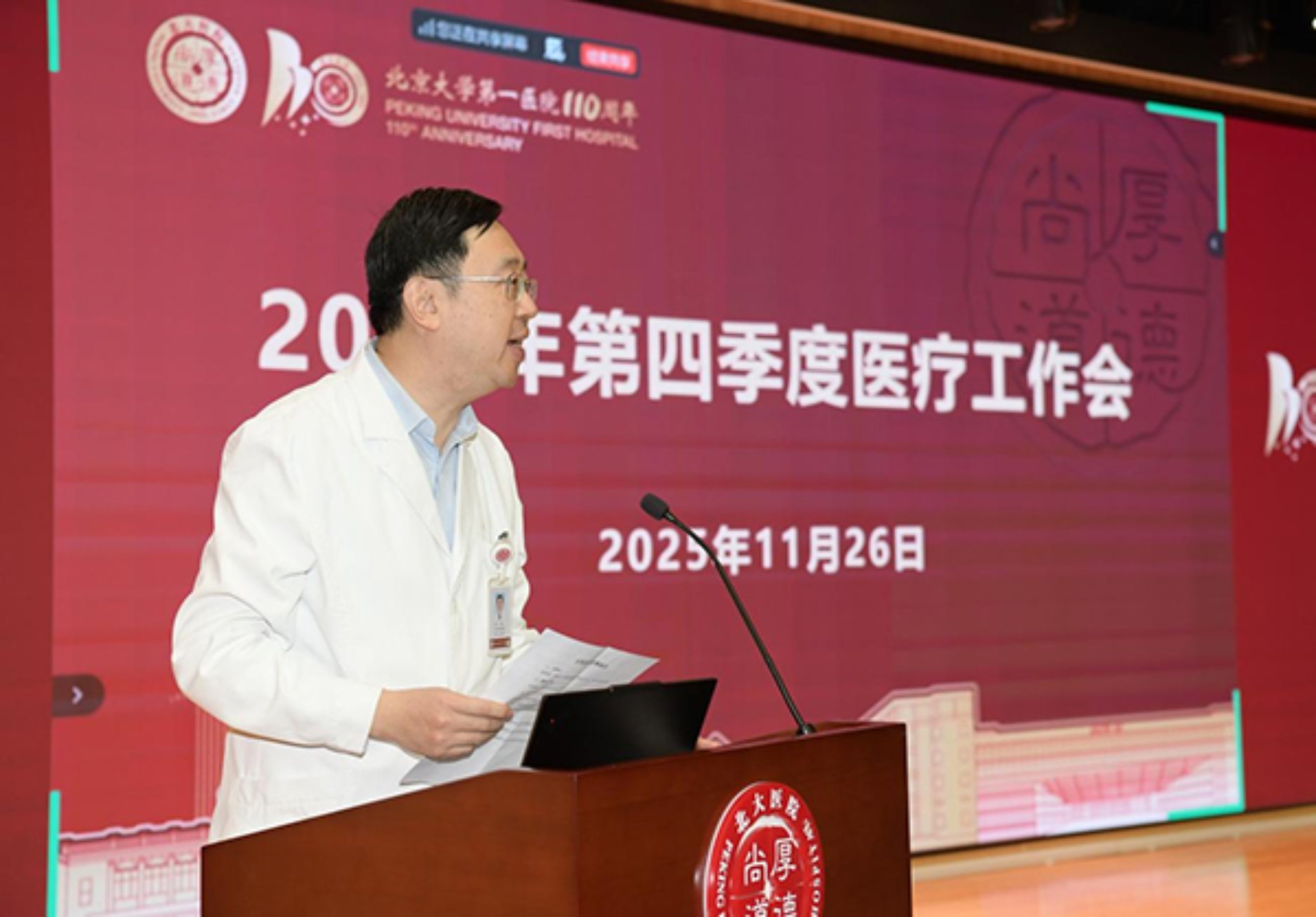 在全院上下齐心协力提升医疗服务能力,保障人民健康之际,为持续梳理并优化医疗服务各环节,进一步筑牢医疗安全防线,11月26日,北京大学第一医院在筑梦厅召开第四季度医疗工作会议。本次会议围绕医疗数据与质量安全展开深入研讨,旨在进一步统一思想、凝聚共识,明确年终冲刺阶段的重点任务与方向,既全力保障年度各项目标圆满收官,也为新一年工作的顺利开启谋好篇、布好局,为医院高质量发展注入新动力。医院党委书记姜辉,院长杨尹默,党委副书记、纪委书记赵瑞萍,副院长李航,副院长王鹏远,总会计师李敬伟,院长助理张崔建出席会议。会议由医务处处长于楠主持。