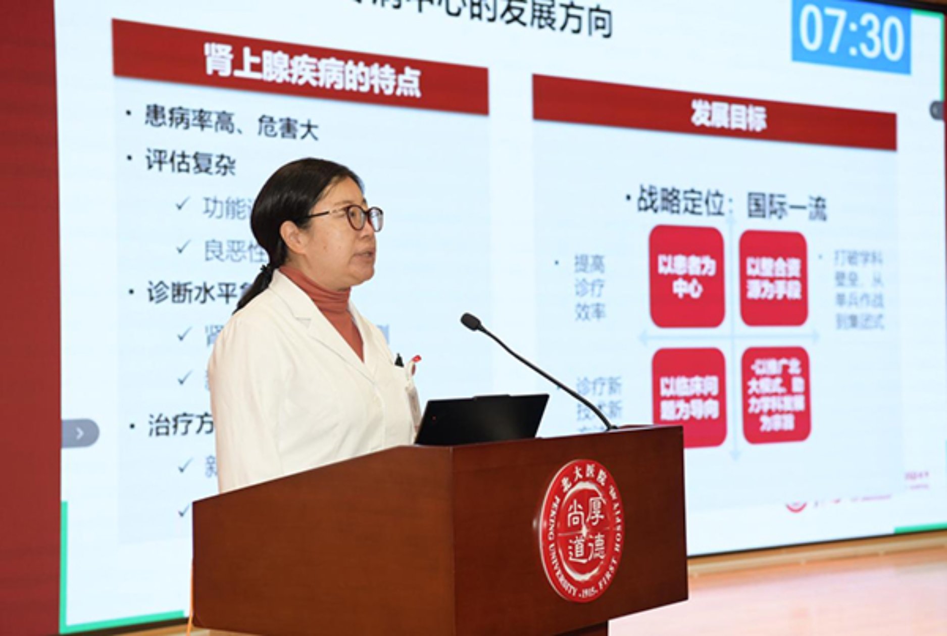 肾上腺疾病中心负责人高莹主任以“破局立新——打造一流的肾上腺疾病诊疗中心”为题,分享了以患者为中心的系统化建设经验。通过构建全流程诊疗模式、推行一体化全程管理、深化MDT协作机制、探索前沿诊疗技术、加强科普推广力度,肾上腺疾病诊疗中心建设成效初显,专病数据库已顺利建成并产出一批高质量科研文章与临床指南,实现了临床服务、科学研究与人才培养的协同发展。