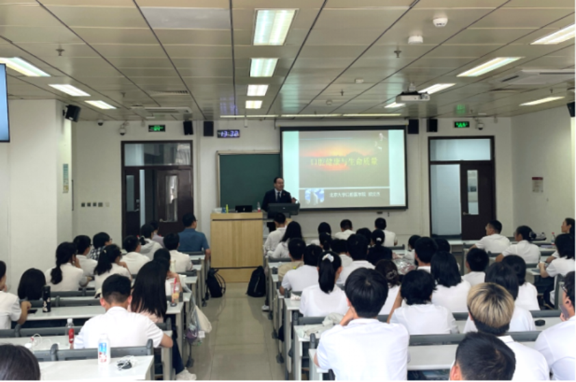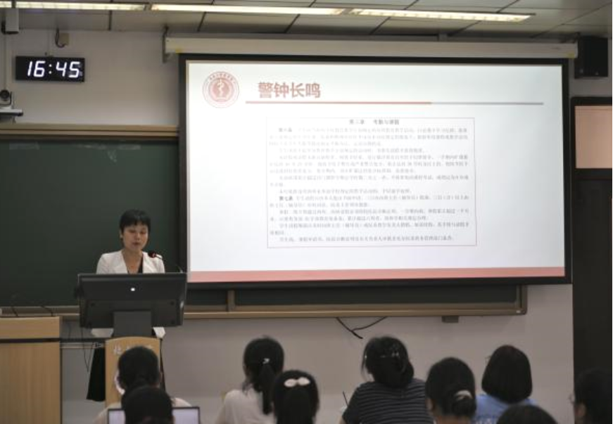 基础医学院邀请第一临床医学院副院长杨莉,第三临床医学院教育处处长韩江莉,口腔医学院副院长胡文杰,北京医院大内科副主任、心血管内科主任医师刘兵为新生开展讲座