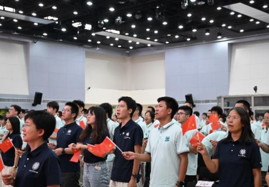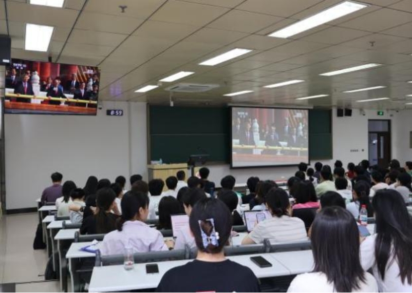 在中国人民抗日战争暨世界反法西斯战争胜利80周年之际,各学院组织全体新生收看纪念大会现场直播,激励同学们牢记初心使命,弘扬伟大抗战精神,把爱国情、强国志、报国行自觉融入实现中华民族伟大复兴的奋斗之中。参与九三阅兵志愿服务及合唱团的学生代表返校后,为新生分享服务重大活动的难忘经历,引领新生同学用实际行动践行“请党放心,强国有我”的铿锵誓言。