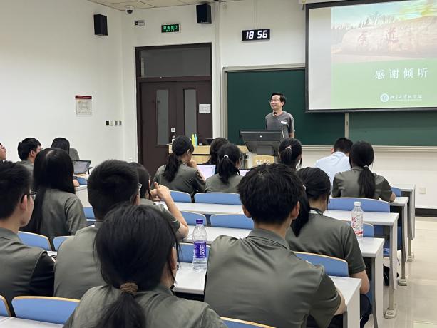 军训期间,各连队邀请“学生五·四奖章”荣誉获得者、退役大学生士兵、十佳学生党支部书记和优秀学生骨干等18位榜样人物分享学业规划、科研探索、职业发展、生活指引、就业选择等多方面经验,引导新生以严谨的态度对待学业与成长,努力探索追求多元化发展路径。鼓励新生立足专业、抒发志向,在表达与思考中深化对北大精神的理解,强化集体认同与使命意识。