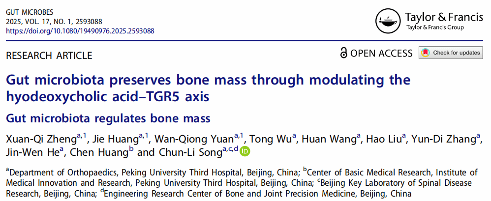 北京大学第三医院宋纯理教授团队在Gut Microbes发表成果:揭示肠道菌群影响骨代谢的机制