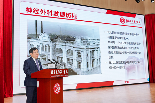 中心主任伊志强作了神经外科中心工作汇报。他系统介绍了神经外科中心的历史、现状与未来规划。与会嘉宾,包括来自北京地区的四十余位神经外科科室主任,均认为中心的成立是整合学科资源、推动协同发展的重要举措,标志着北大医院神经外科迈入了体系化、高质量发展的新阶段。