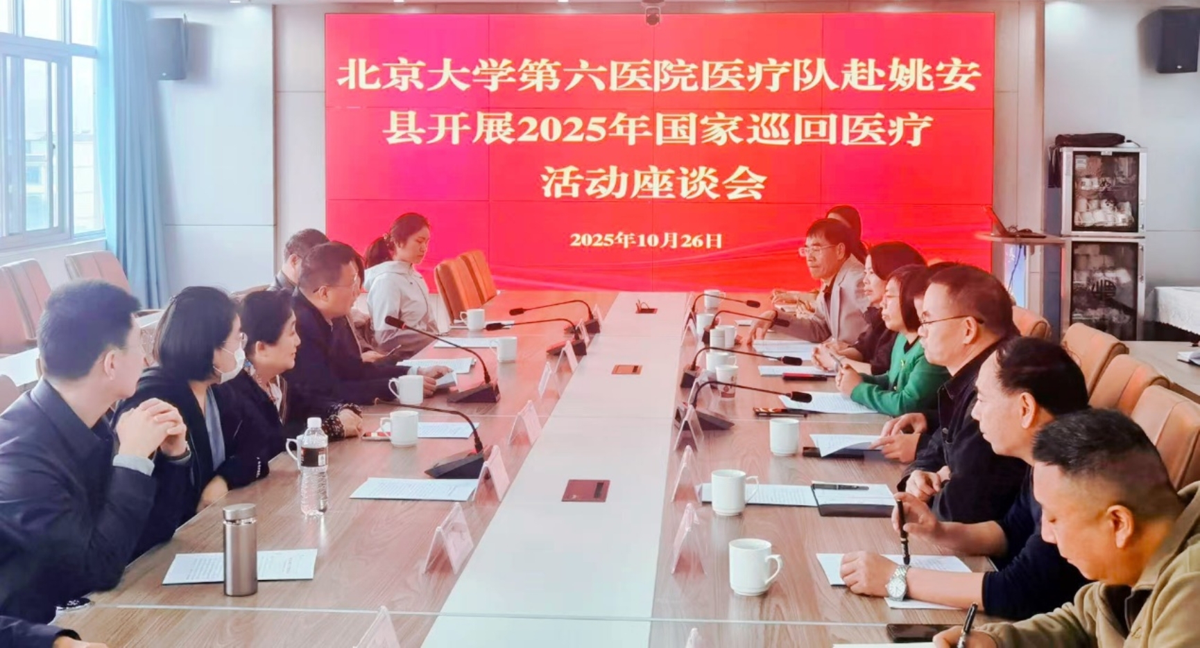 为贯彻落实国家卫生健康委2025年开展巡回医疗工作的相关部署和工作要求,北大六院积极承担国家任务、践行社会责任,充分发挥精神心理学科的优势,选派北大六院副院长董问天主任医师、北大六院党委委员、中国心理卫生杂志社社长黄悦勤教授、医务处处长梁英主任医师、科研处处长陈冬雪研究员、临床精神病学研究室主任王华丽教授、儿童精神病学研究室主任钱秋谨教授、张卫华副编审、陈超副主任医师、朱玥副主任医师、王玉璐心理治疗师共计10名专家组建国家巡回医疗队,前往云南楚雄地区开展巡回医疗工作,进一步推进优质医疗资源扩容下沉和区域均衡布局,切实提高优质医疗资源的可及性。
