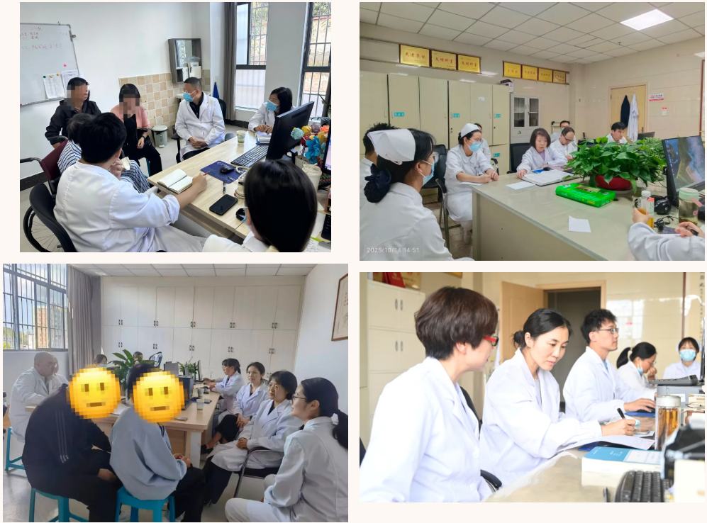 在此期间,董问天副院长带领医疗队全体成员与当地医院进行座谈交流,共同探讨两地未来如何建立联合研究型病房、开展远程会诊和专家定点帮扶工作,以提升当地疑难、罕见病例诊治能力;黄悦勤教授作为专家工作站专家,就科研项目申报、科研设计等专业内容进行座谈指导,并面向科室主任和科研骨干进行了流行病学基本原理和方法的专题讲座;梁英处长整体统筹本次巡回医疗工作,安排部署各项党建及业务活动,保障医疗队工作平稳开展,将优质医疗资源落到实处;陈冬雪处长就具体的科研管理工作进行了座谈,分享了科研管理经验,帮助基层医院构建规范化科研管理体系,为提升基层医疗机构的科研内生动力奠定基础;王华丽教授带着北大六院出品的心理健康科普书籍跨越千里,分享了宝贵的老年心理健康学术智慧;钱秋谨教授认真细致,为不会说普通话的患儿及家长耐心问诊、反复解答,尽最大努力为他们解答疑惑;张卫华医生在当地为工作人员培训睡眠障碍的诊断知识及助眠药物使用;朱玥医生为基层医生进行示教,并利用休息时间与当地同道围绕病例进行深入讨论;陈超医生出发前脚部受伤的情况下,依然坚持随医疗队奔赴楚雄,全程深度参与巡回医疗工作;王玉璐医生则针对当地医护人员与教师,开展了系列心理健康讲座,一定程度上满足了基层工作人员心理减压的需求。10位队员在楚雄当地不负重托与期望,以饱满的热情、专业的水平投入到巡回医疗工作中,落实了国家与医院的工作部署与要求,推动国家级优质医疗资源直达群众家门口。