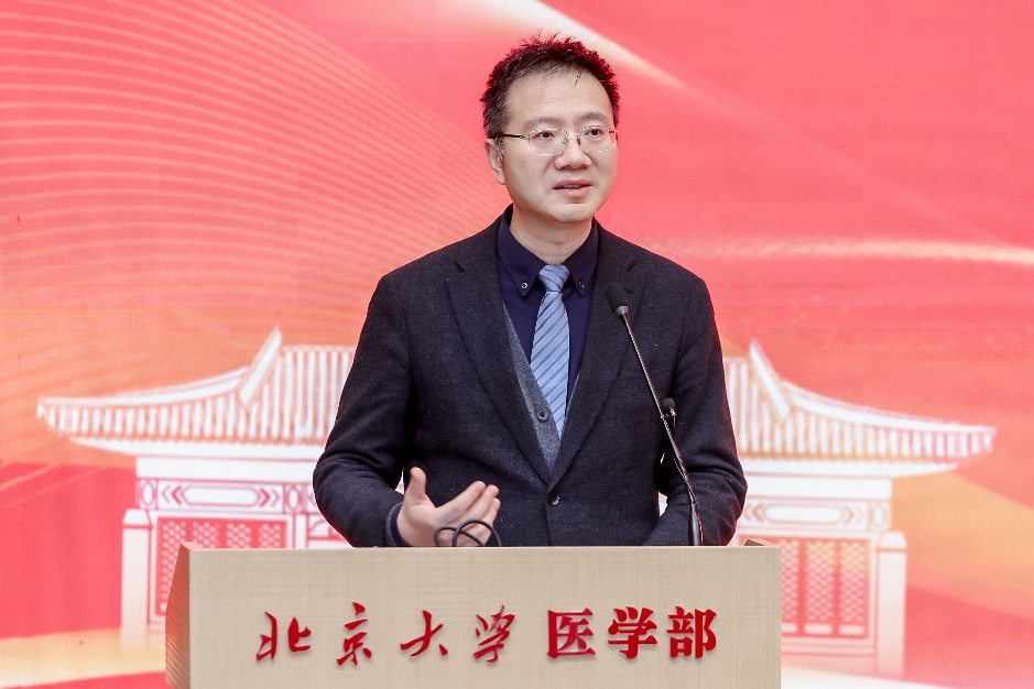 基础医学院院长助理张勇、北京大学首钢医院院长助理郭正纲为获得学术潜力奖的同学及其导师颁奖