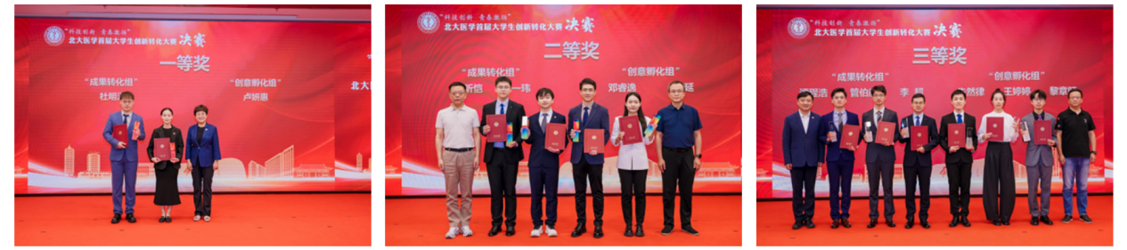 “科技创新 青春激扬”北大医学首届大学生创新转化大赛决赛于9月26日下午举办。成果转化组与创意孵化组的22支晋级队伍,历经形式审查、函评、半决赛角逐,从近百项报名团队中脱颖而出,展开终极对决,经过专业评审点评打分,12项优胜项目获奖。