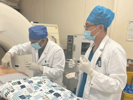 在放射科袁慧书主任团队指导下,Mangroo Ateelesh医生通过“模拟训练—临床观摩—独立操作”的阶梯式培养模式,全面掌握了CT引导穿刺核心技术。