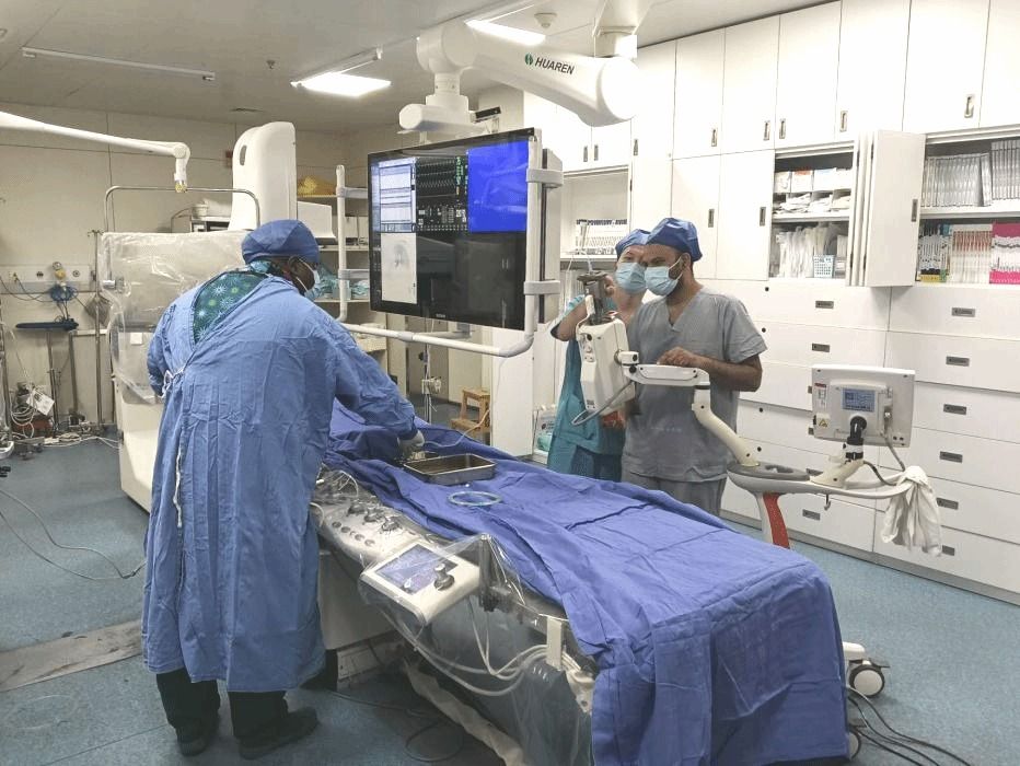 2020年,北京大学医学部统筹指导,北京大学第三医院和毛里求斯维多利亚医院建立对口支援合作关系。2021年,中国驻毛里求斯大使馆与毛里求斯健康和福利部共同签署合作项目概念书。2021至2023年,持续深入沟通协作,北京大学医学部、北京大学第三医院、中国驻毛里求斯大使馆、毛里求斯健康和福利部、维多利亚医院举行多次线上会议,不断优化合作方案。2023年,付卫院长率专家团队赴毛里求斯开展实地调研,精准对接当地医疗需求,最终确定以介入治疗技术为核心合作方向,为项目的顺利实施奠定了坚实基础。2025年,该项目迎来首批培训学员——来自维多利亚医院的3名医生和1名护士。