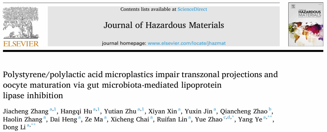 (聚苯乙烯/聚乳酸微塑料通过肠道菌群介导的脂蛋白脂肪酶抑制损害跨透明带凸起与卵母细胞成熟)的研究论文, 该研究首次系统比较传统与可降解微塑料的生殖毒性差异, 微塑料损害卵母细胞发育的机制本研究针对日益严重的微塑料污染问题